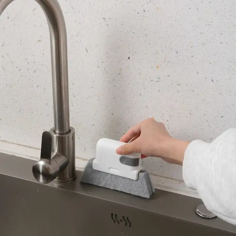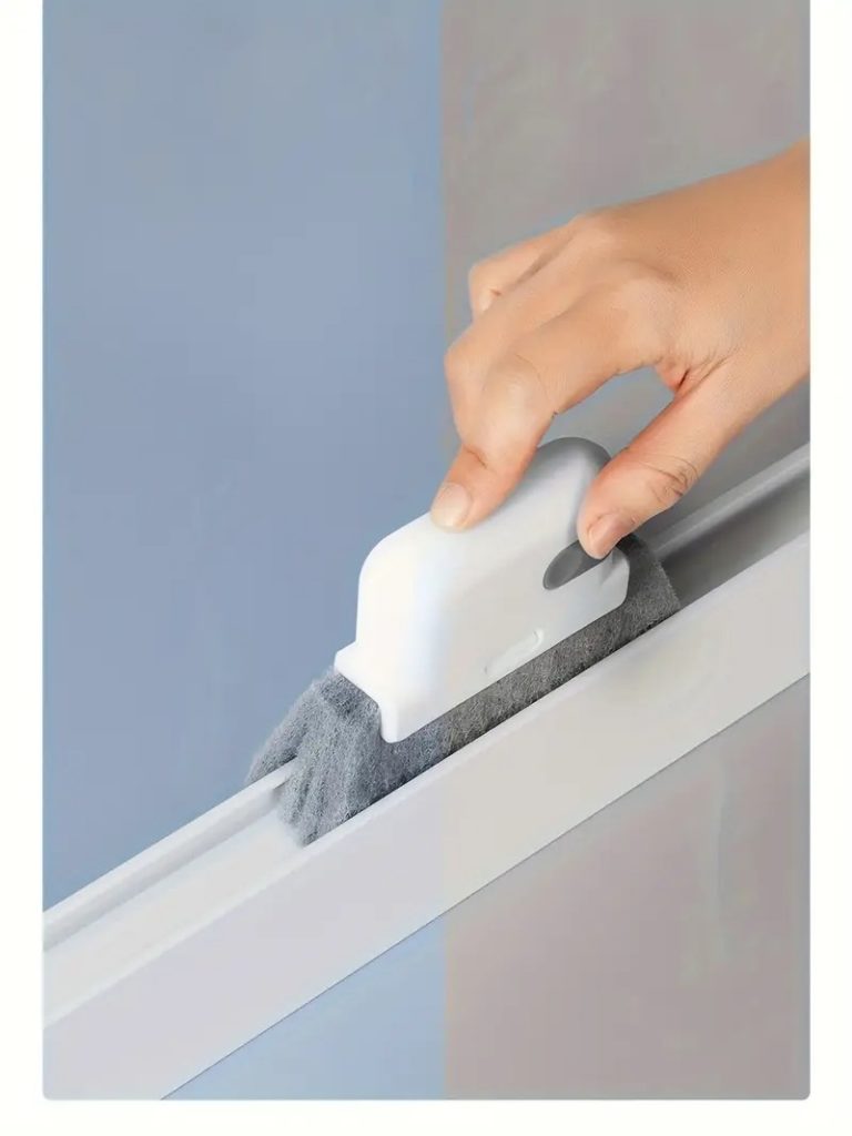 この三角形みたいな形状が、窓枠の角にピタッとフィットするんですよ。今まで届かなかった細かい部分も、スイスイ掃除できちゃいます。