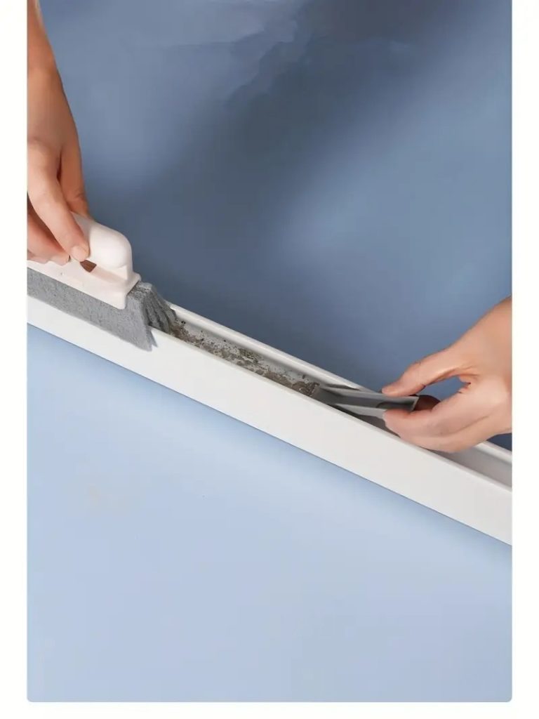 画像で実際の使用シーンを見てもらえばわかるんですけど、このブラシを窓枠の溝に沿って滑らせるだけで、驚くほど汚れが取れるんです。